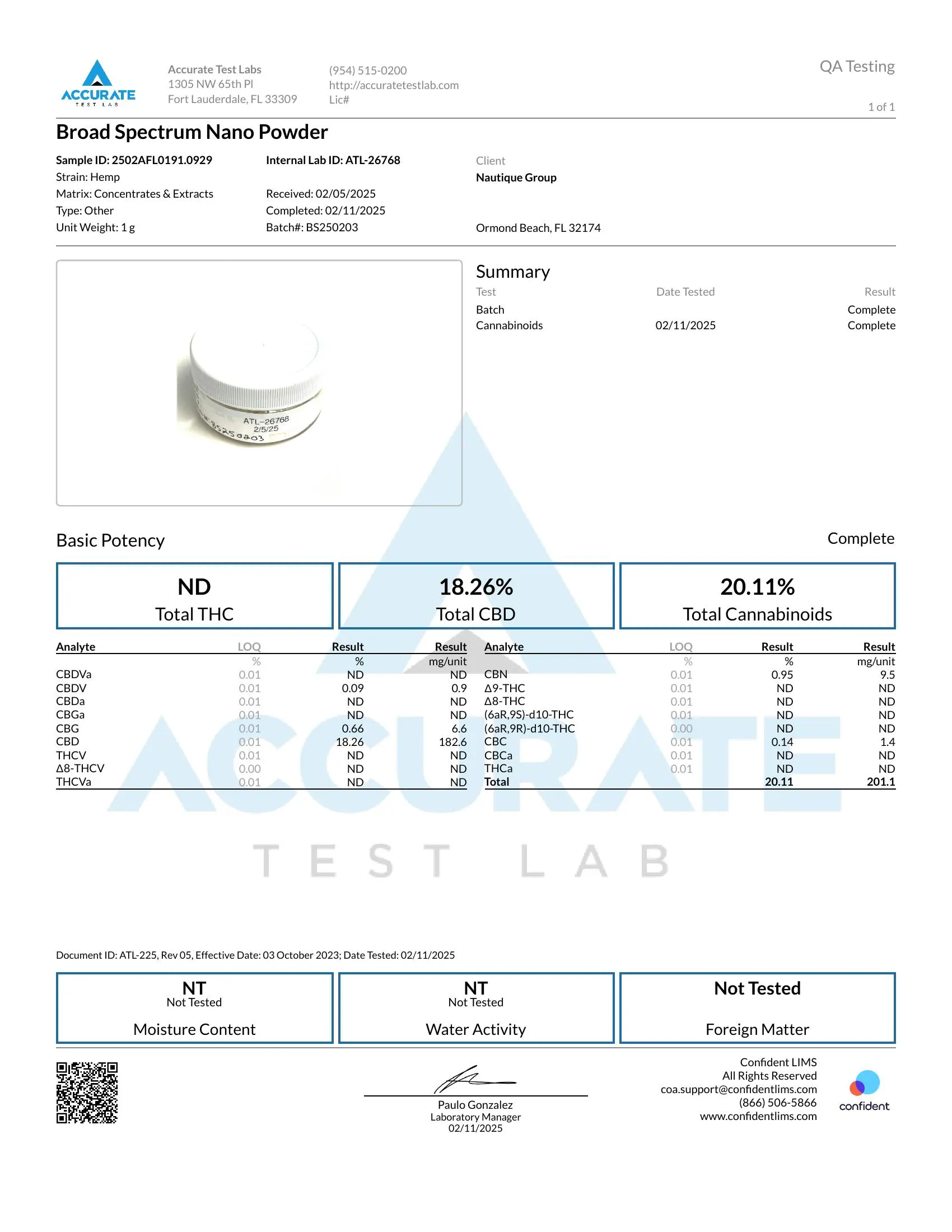 1,000mg Broad Spectrum CBD Nano Powder - Bulk Nano Technology