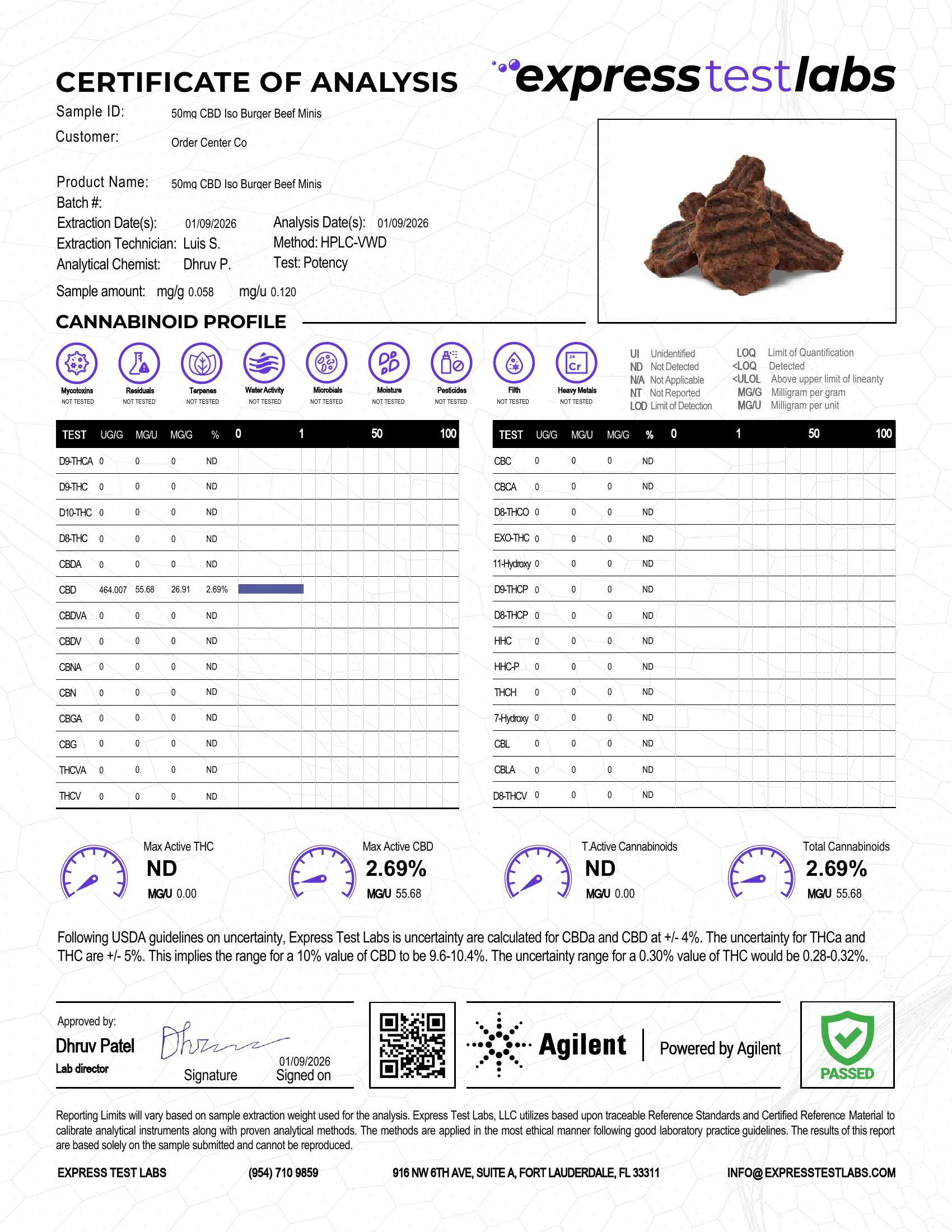 Product details: MediPets Burger Beef Minis CBD pet treats for dogs, CBD isolate, total 1,000mg per 7.4oz bag, 50 minis per package.