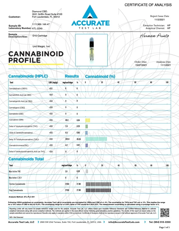 Hyper Delta-10 Vape Cartridges in AK 47 aren’t made for relaxing. They’re infused with 1000mg of Delta-10 THC for those of you looking for a loud and fun experience. Hyper Delta-10 Disposable Vape Cartridges flavored with AK 47 toss in a bit of Delta-8 to make the buzz go wild. It’s lab-tested for your safety — guaranteed to be a pure, unadulterated product with no synthetics. Our disposable vaping pens contain no Vitamin E Acetate whatsoever, and all of our lab results are available online for inspection.