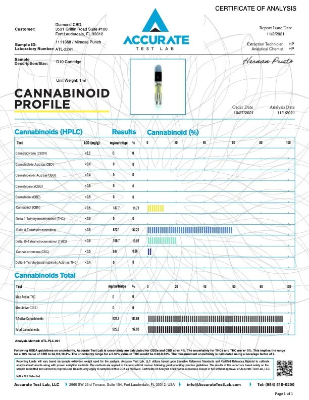 Hyper Delta-10 Vape Cartridges in Mimosa Punch aren’t made for relaxing. They’re infused with 1000mg of Delta-10 THC for those of you looking for a loud and fun experience. Hyper Delta-10 Disposable Vape Cartridges flavored with Mimosa Punch toss in a bit of Delta-8 to make the buzz go wild. It’s lab-tested for your safety — guaranteed to be a pure, unadulterated product with no synthetics. Our disposable vaping pens contain no Vitamin E Acetate whatsoever, and all of our lab results are available online for inspection.