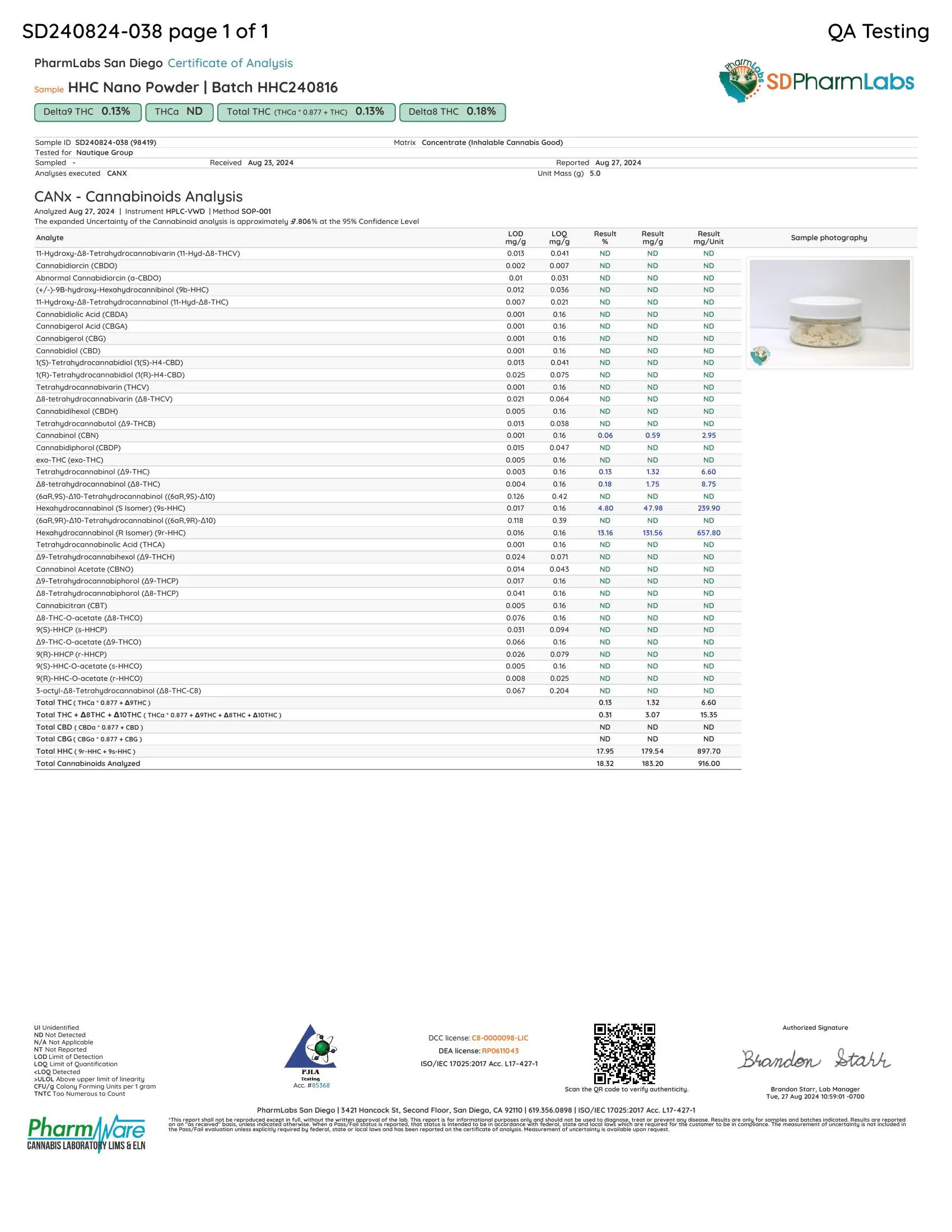 1,000mg HHC Nano Powder - Bulk Nano Technology