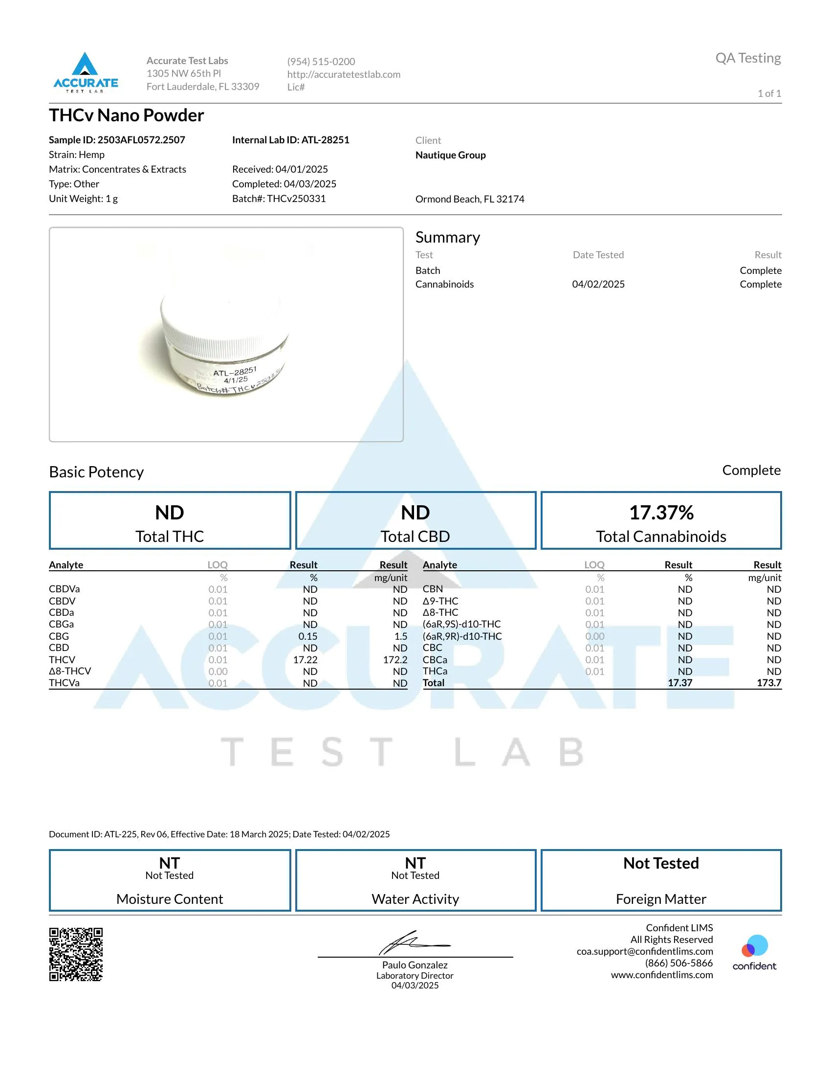 1,000mg THCV Nano Powder - Bulk Nano Technology