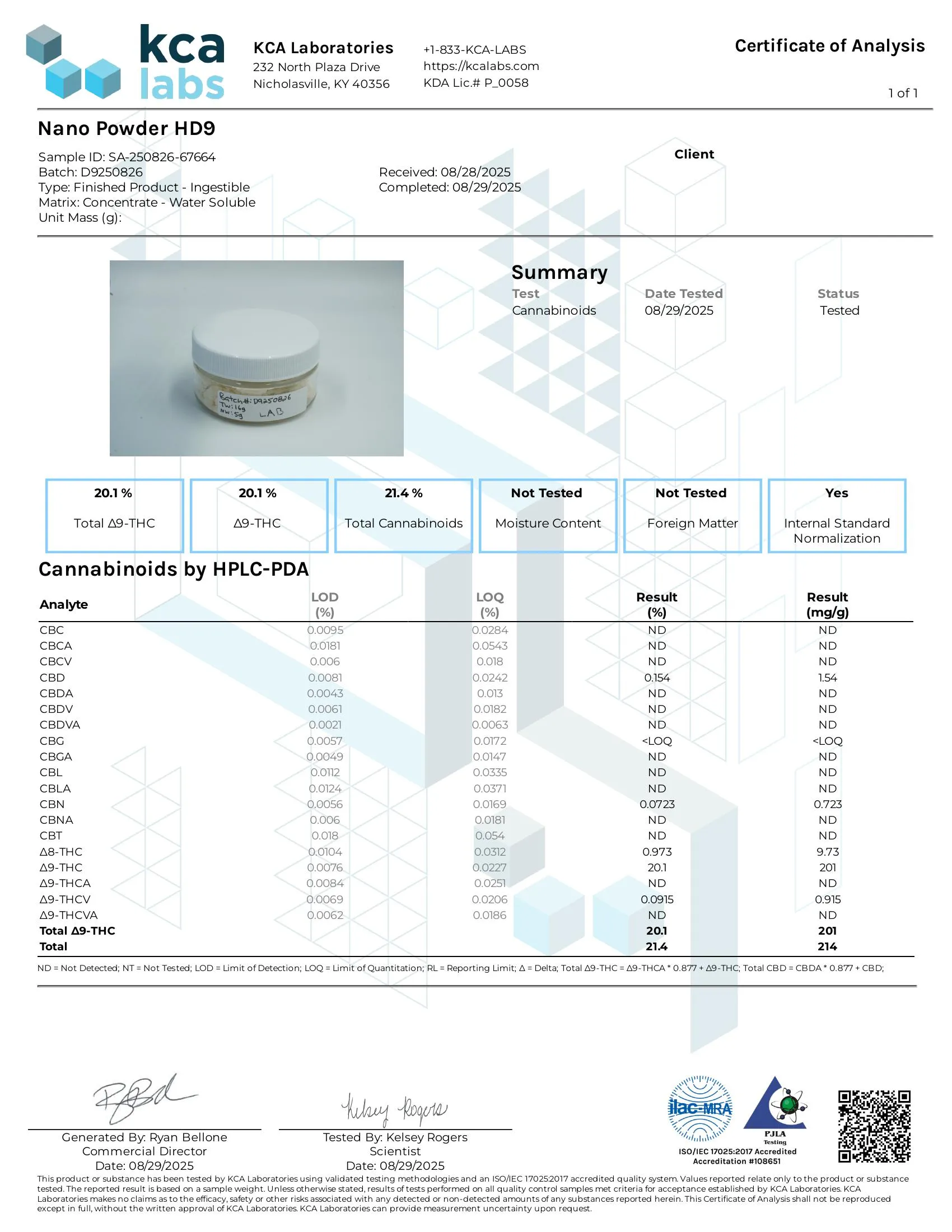 100g Delta 9 Distillate Nano Powder - Bulk Nano Technology