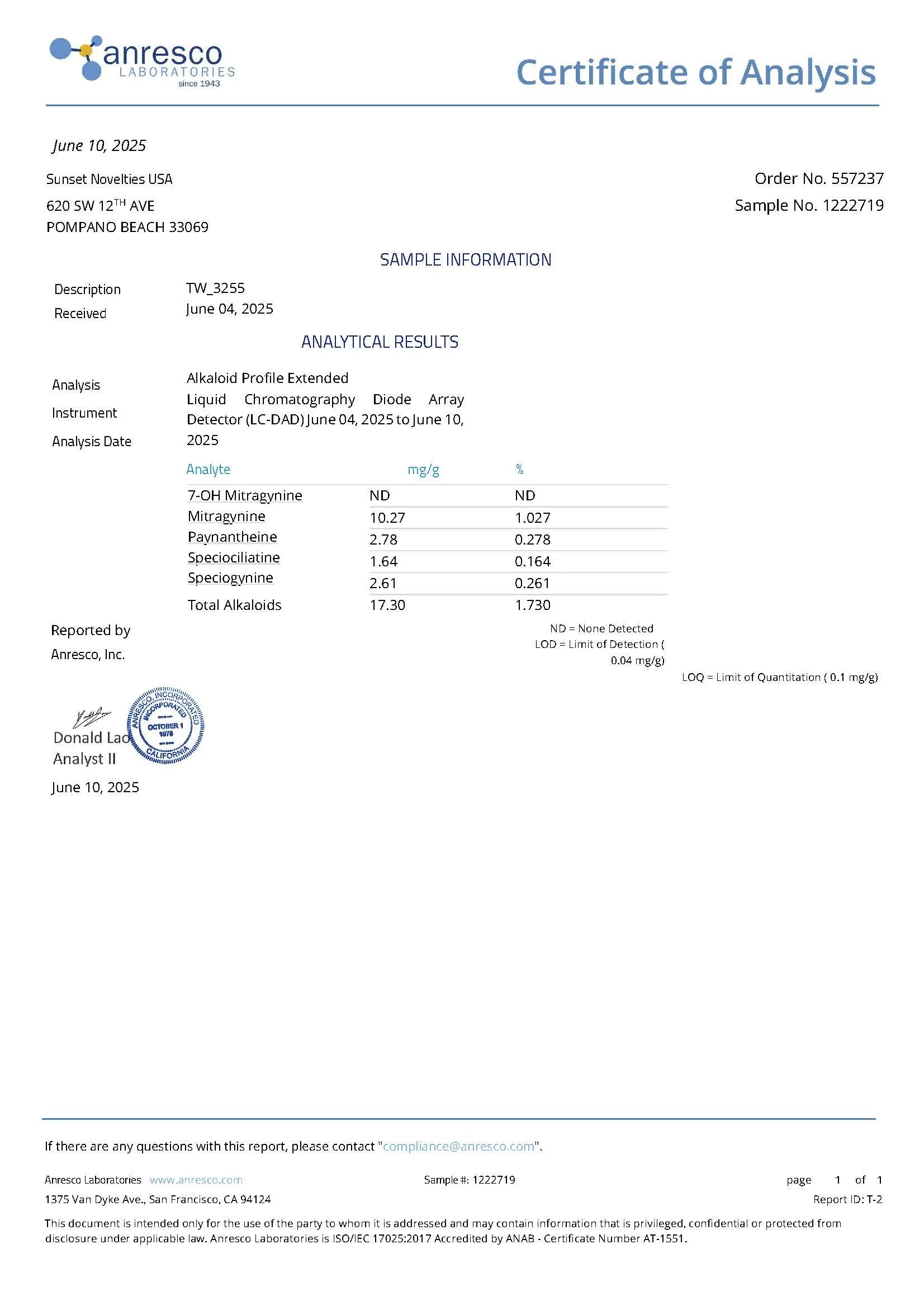 Each batch undergoes comprehensive third-party lab testing to verify purity, potency, and safety, ensuring you receive only clean, high-quality kratom products you can trust.