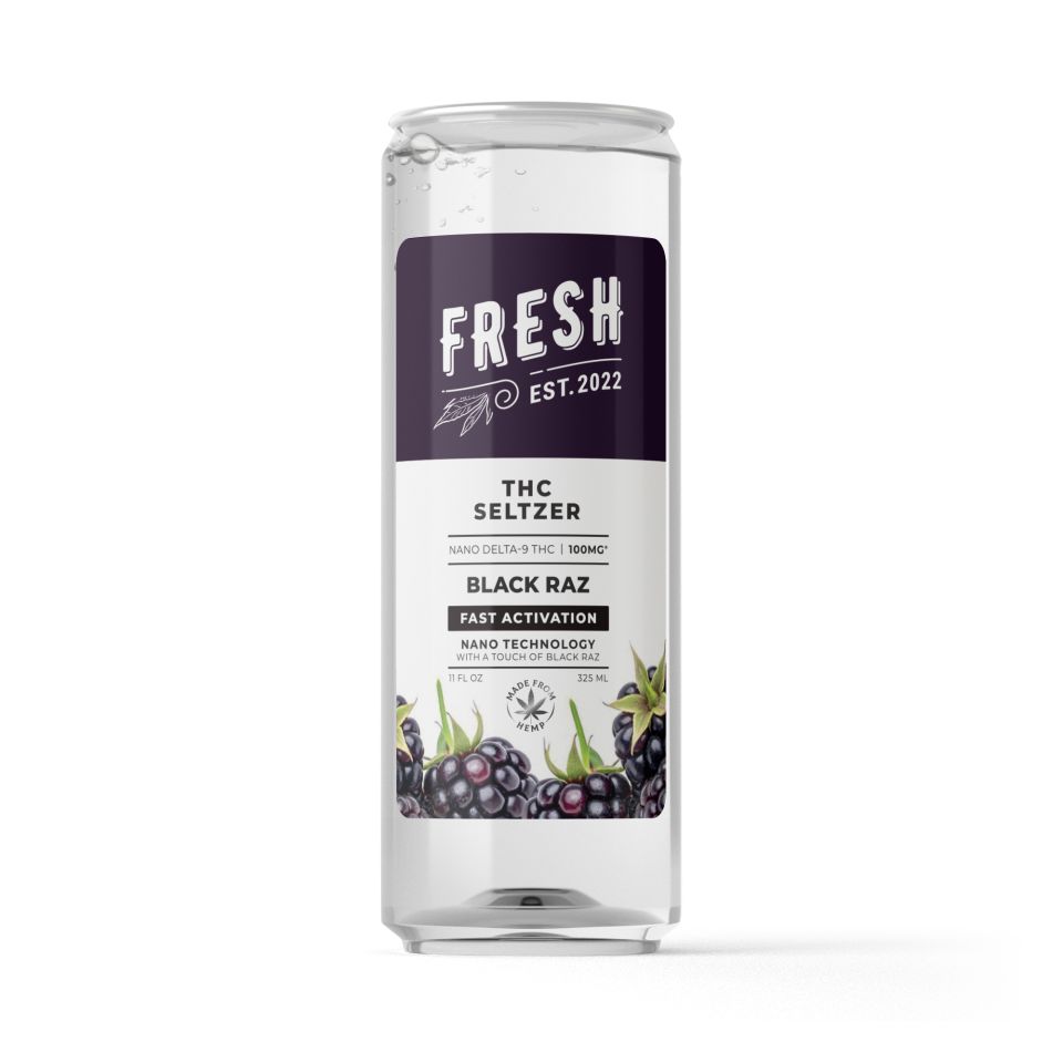 Meet Fresh Black Raz THC Seltzer, a crisp, sparkling beverage powered by Delta 9 with nano-enhanced absorption. This 11oz can packs a total of 100mg, wrapped in a juicy black raspberry profile that’s tart, bright, and incredibly refreshing. It’s the cool, modern way to elevate your downtime—no smoke, no fuss, just clean bubbles and a smooth, classic feel.
