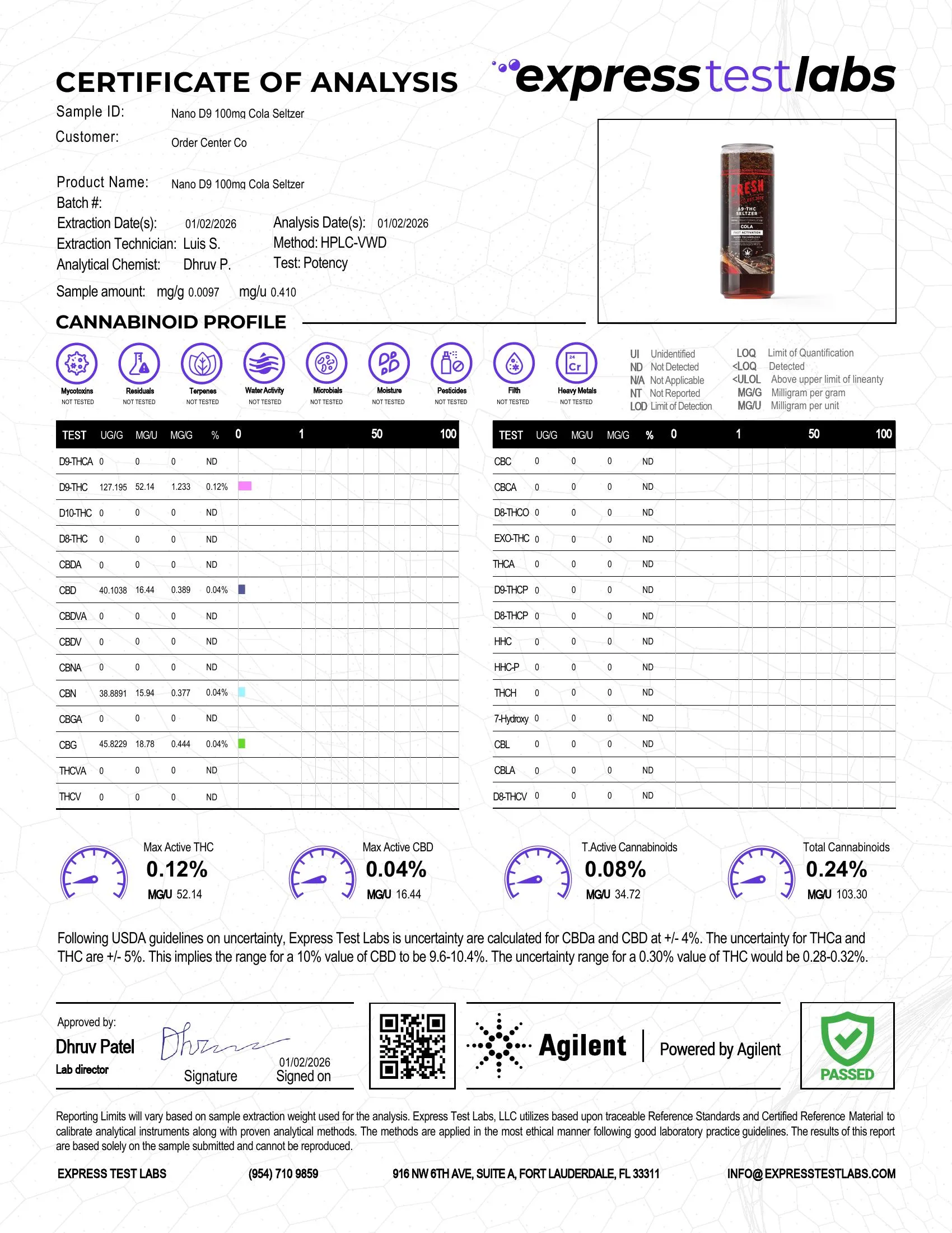 100mg Cola THC Seltzer - D9 Nano - Fresh