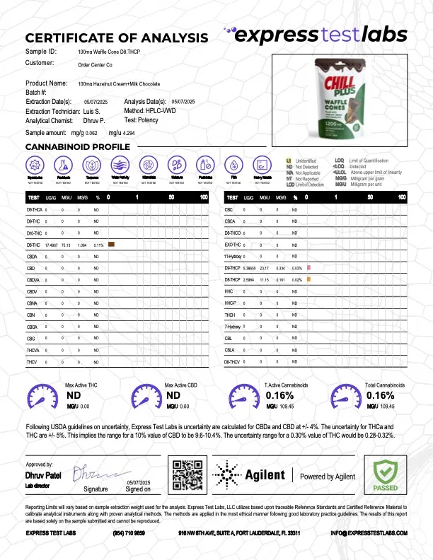 With over a decade in the game and more than a million orders fulfilled, Diamond CBD’s Chill Plus line brings you trusted quality in every box. Our hemp is sourced in the USA and every batch is third-party lab tested for purity and potency—so what’s on the label is what’s in your cone. Backed by our customer-first service and a 100-day Make It Right guarantee, you can indulge with confidence, knowing your dessert is as dependable as it is delicious.