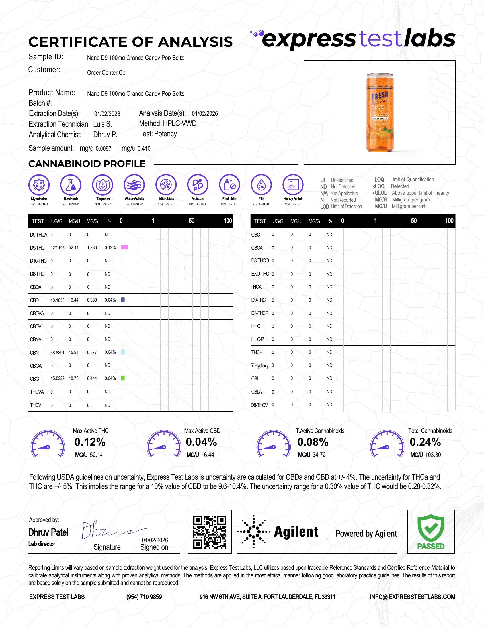 100mg Orange Candy Pop THC Seltzer - D9 Nano - Fresh