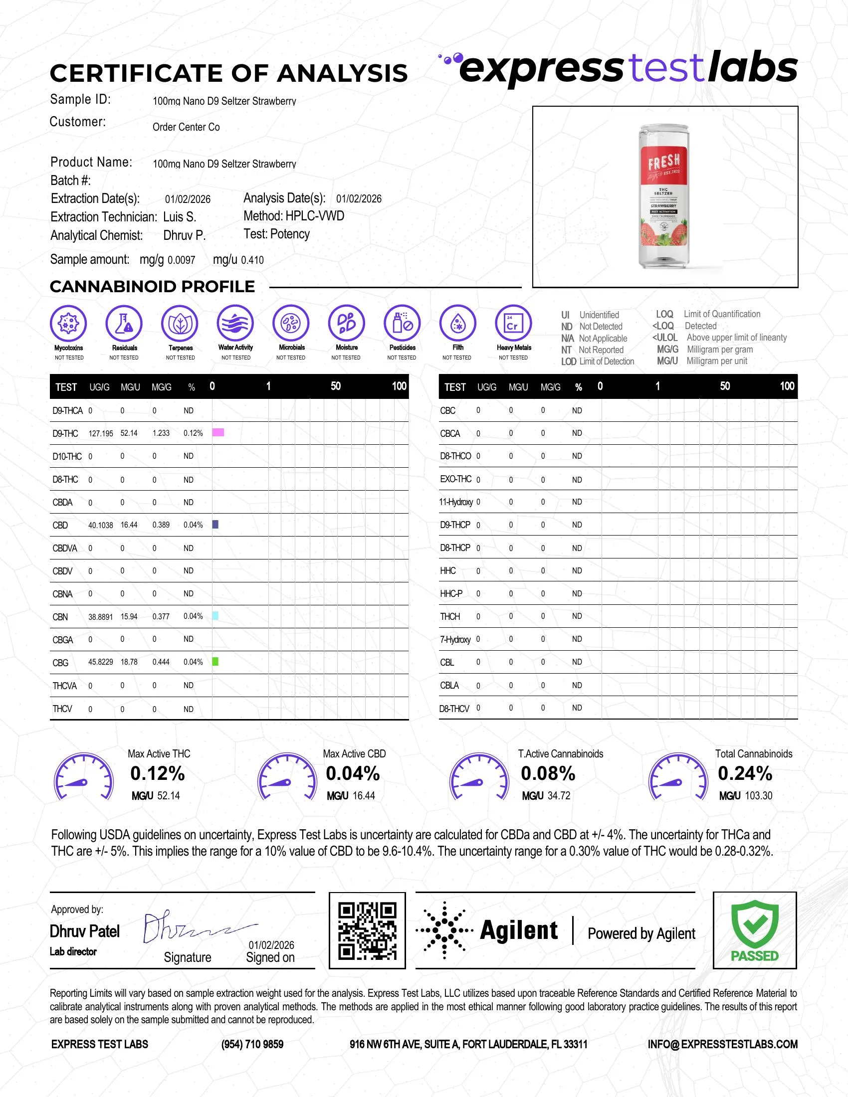 100mg Strawberry THC Seltzer - D9 Nano - Fresh