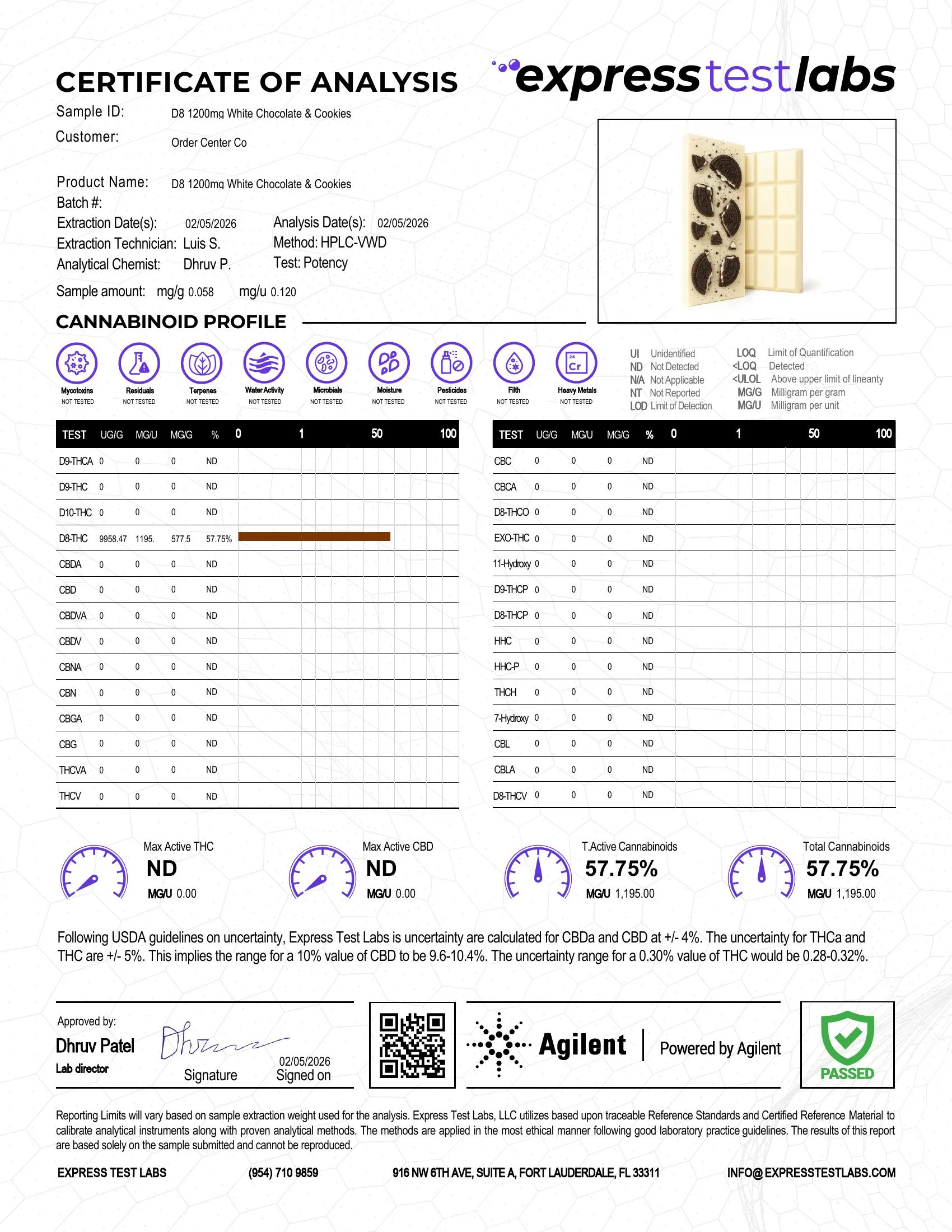 Introducing our exceptional THC Edible, the White Chocolate & Cookies Bar, infused with Delta 8, packed with a total strength of 1,200mg. This hand-crafted chocolate delights your taste buds while providing that smooth, satisfying Delta 8 experience.