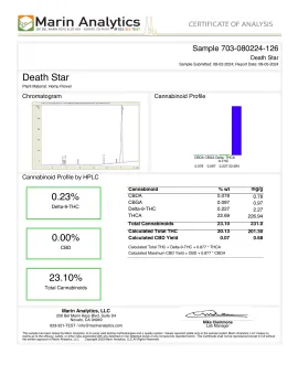 Our Death Star pre-roll is not just about potency; it embodies the rich aromas and flavors of this popular Indica. Prepare your senses for a robust and relaxing journey after a long day, delivering effects that melt away stress while elevating your mood. The ease of a pre-roll means you can enjoy the smooth experience on-the-go or at home without the need for accessories.