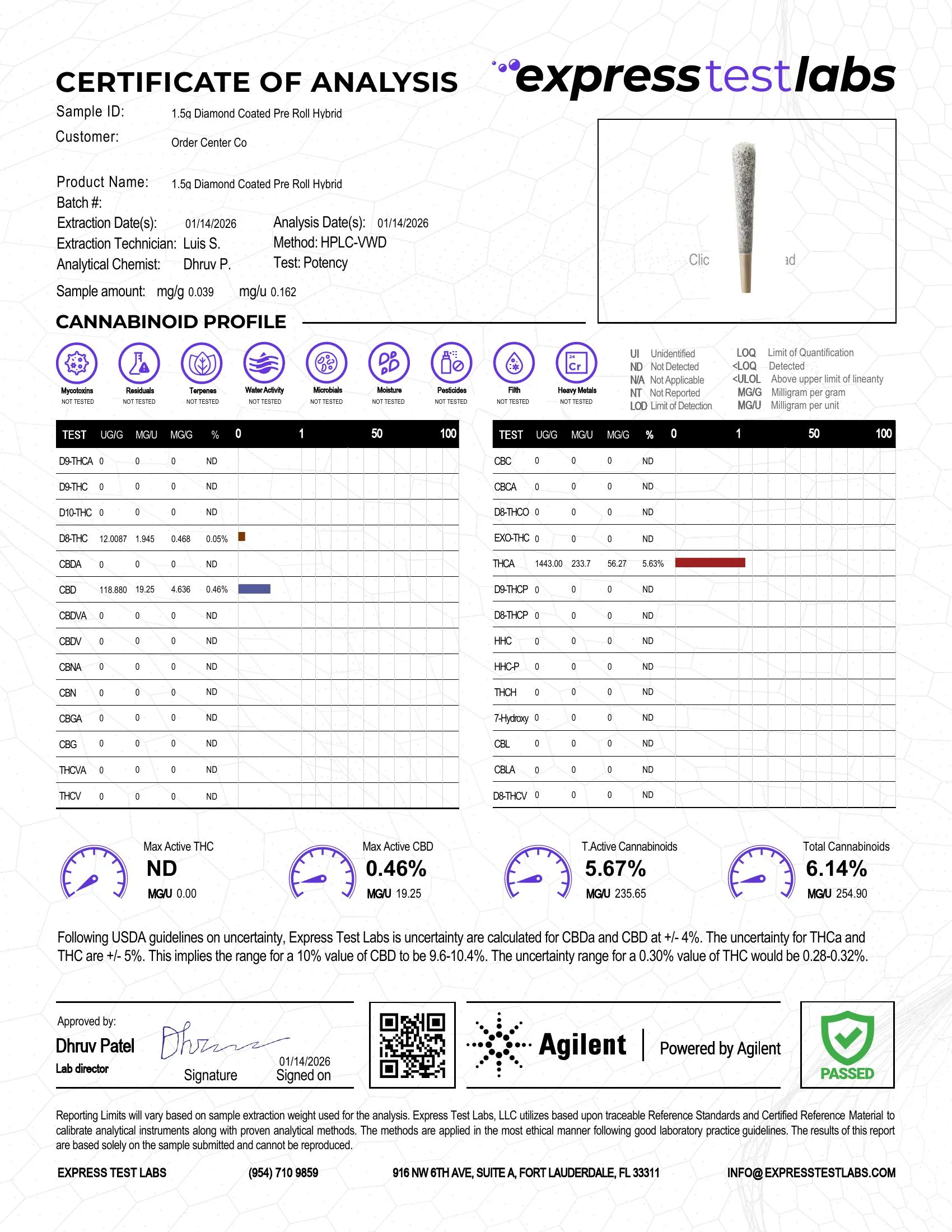 For peace of mind, our THCA products are sourced from partner farms throughout the United States, ensuring top-notch quality. Each product undergoes rigorous lab testing for safety and purity, so you can trust what you’re consuming. Take a moment for yourself and elevate your routine with our remarkably smooth, Diamond Coated Pre-Roll.