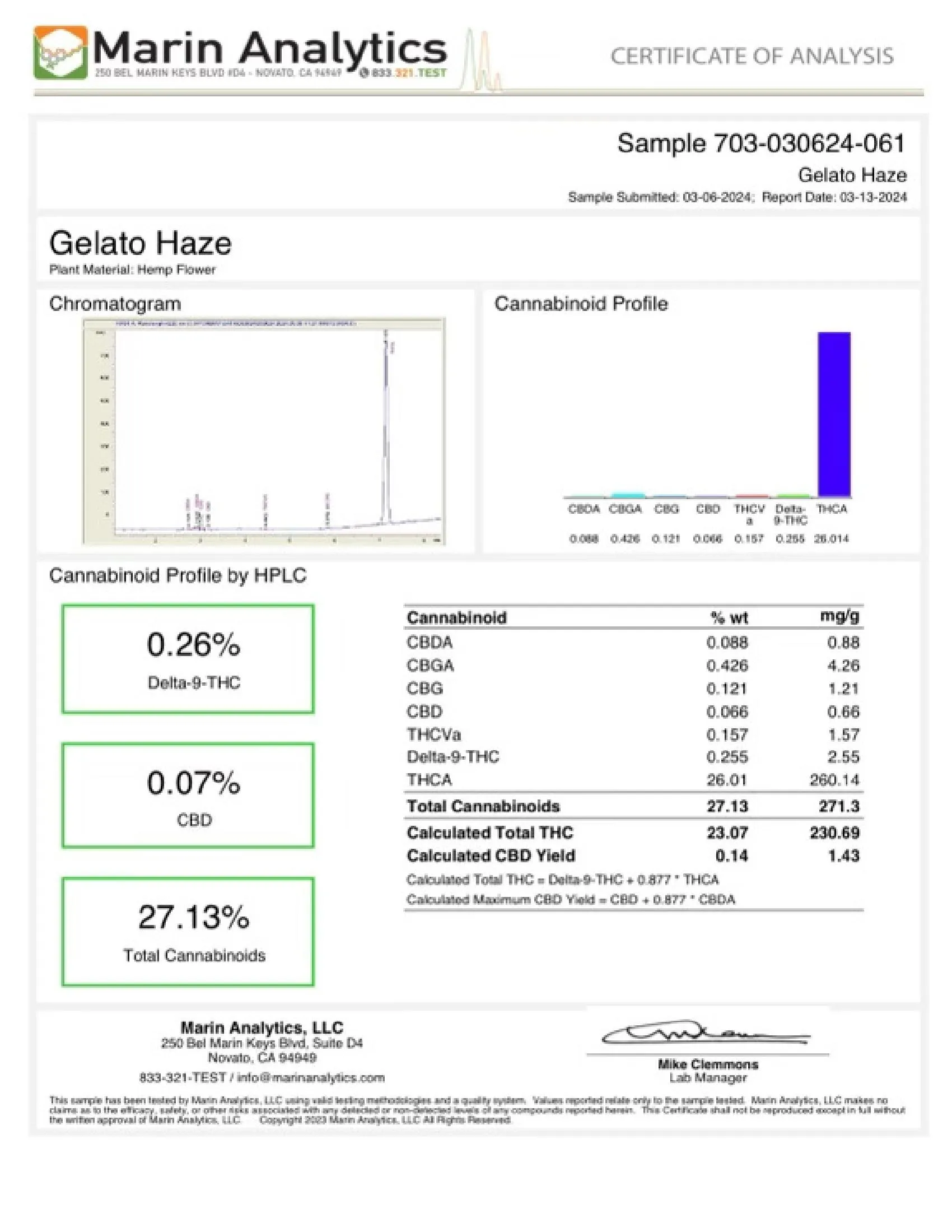 - Total Cannabinoid Contents: 27.13%