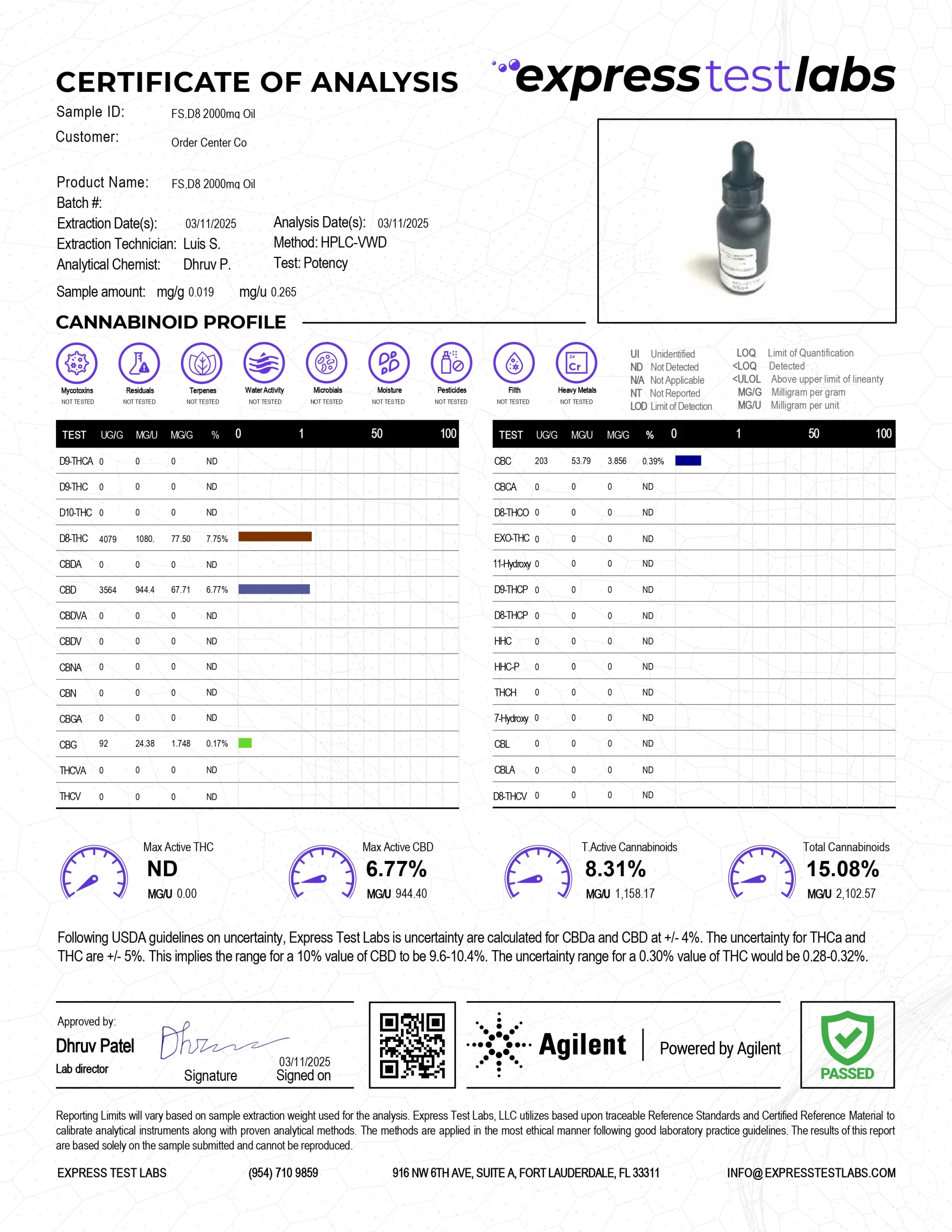 2,000mg D8 & Full Spectrum CBD Oil - Chill Plus