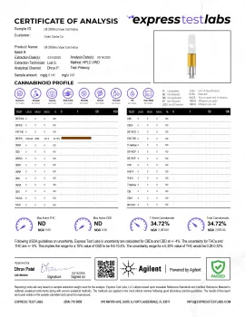 The amount of THC varies depending on the size of our cartridges. The THC content of Diamond's cartridges ranges from 500mg to 1200mgIn addition to being natural, cruelty-free, and free of harmful artificial additives, we do not use MCT, PG, VG, or PEG oil in our cartridges.