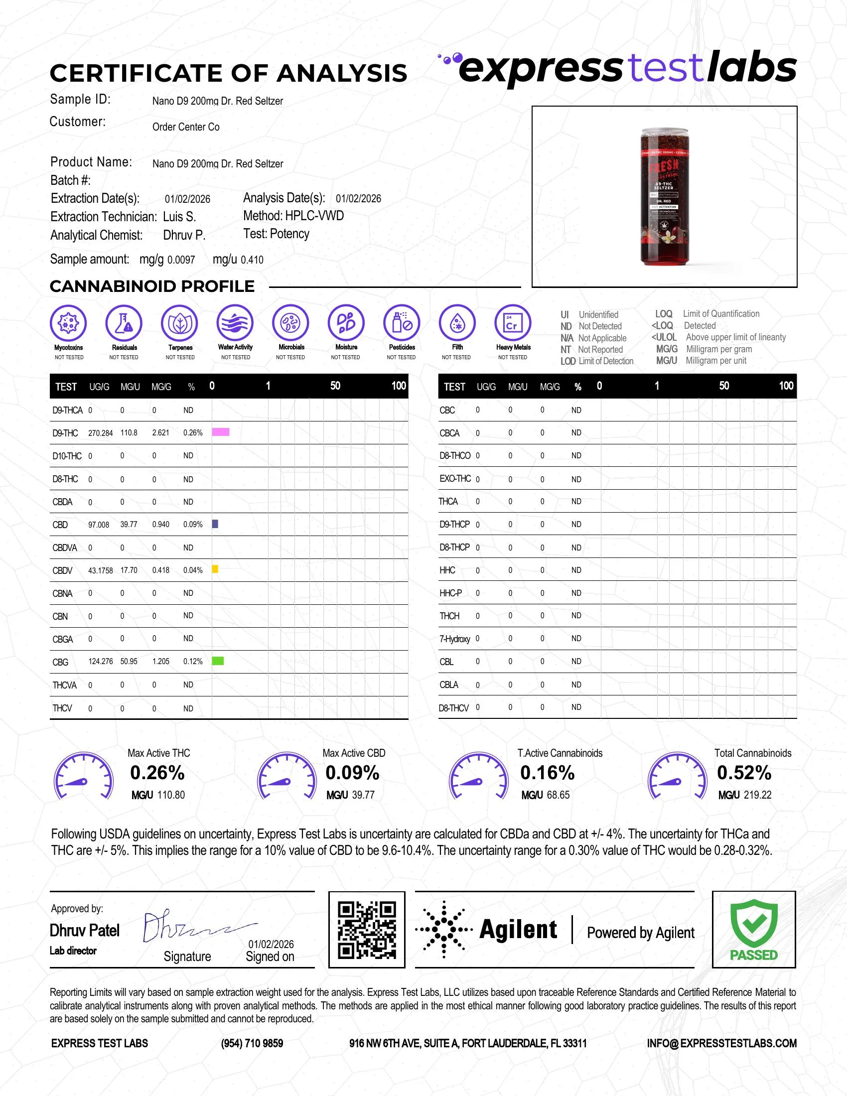 200mg Dr.Red THC Seltzer - Delta 9 Nano - Fresh