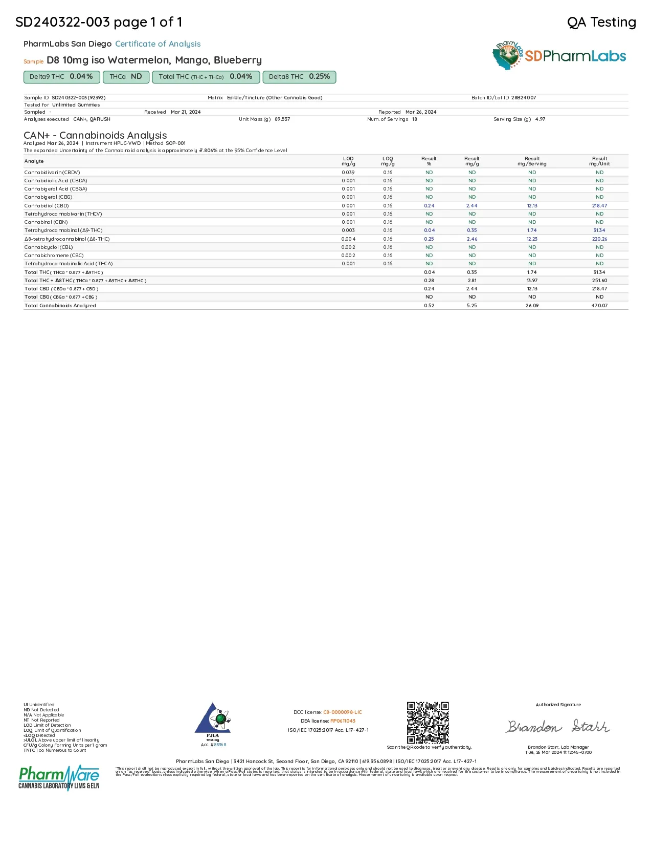 Tapioca Syrup, Corn Syrup, Water, Pectin, Citric Acid Natural Flavors, Fruit and Vegetable Extract (Color), Hemp-Derived Delta 8 THC, Hemp-Derived Isolate CBD.