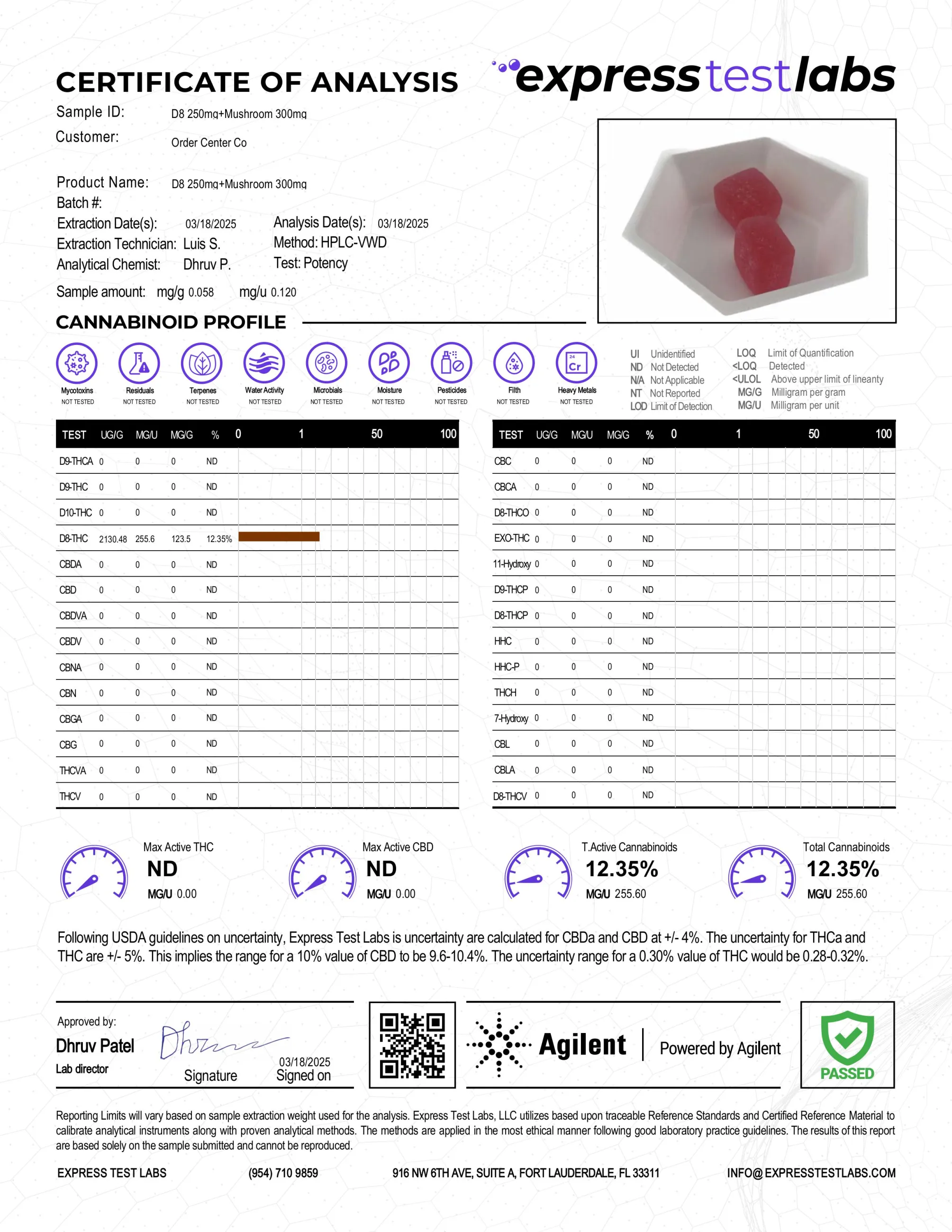 All of your gummies undergo third-party lab testing to ensure purity, quality, and accurate dosing. You can enjoy your gummies with the peace of mind that you're eating exactly what you paid for: high-quality, pure, accurately-dosed cannabinoids.