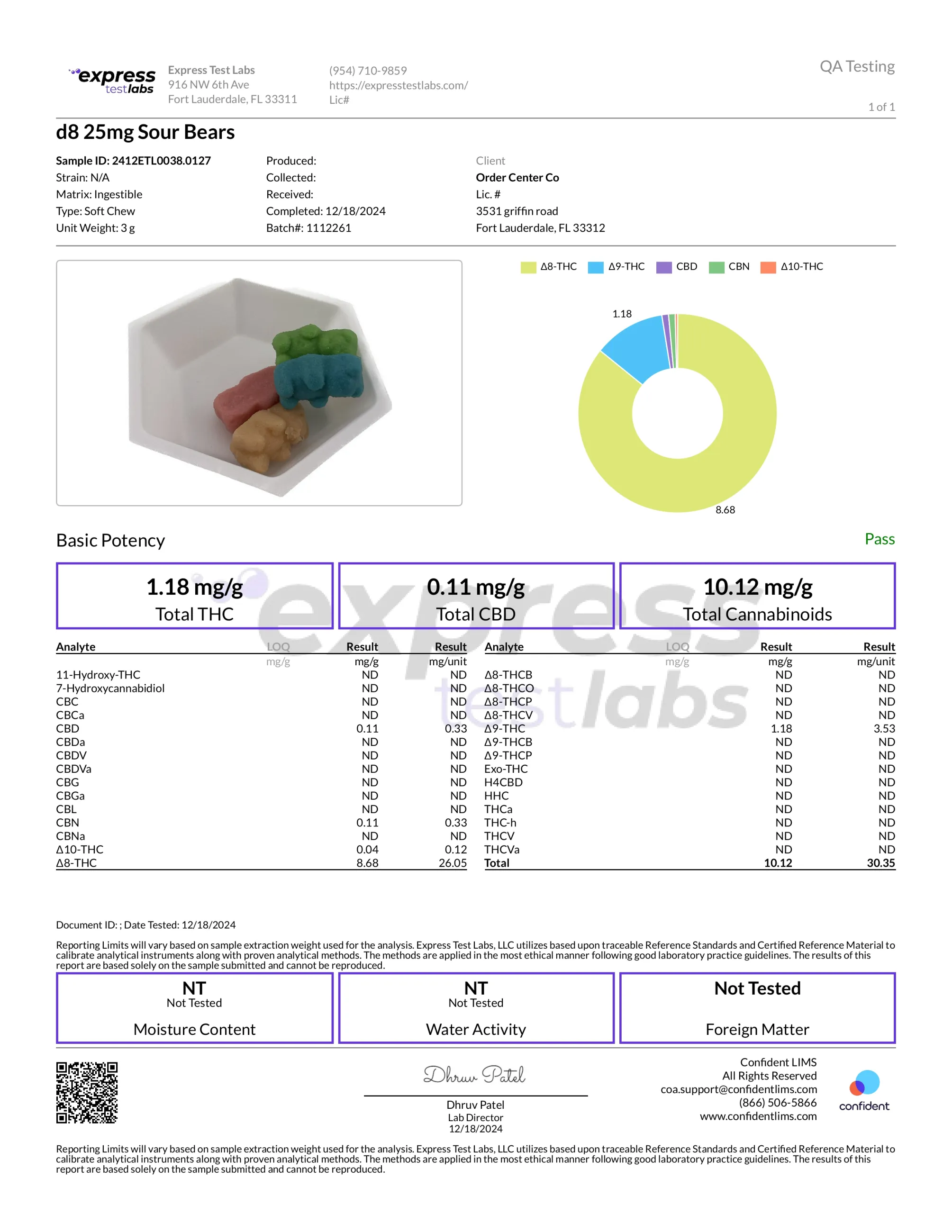 All of your gummies undergo third-party lab testing to ensure purity, quality, and accurate dosing. You can enjoy your gummies with the peace of mind that you're eating exactly what you paid for: high-quality, pure, accurately-dosed cannabinoids.