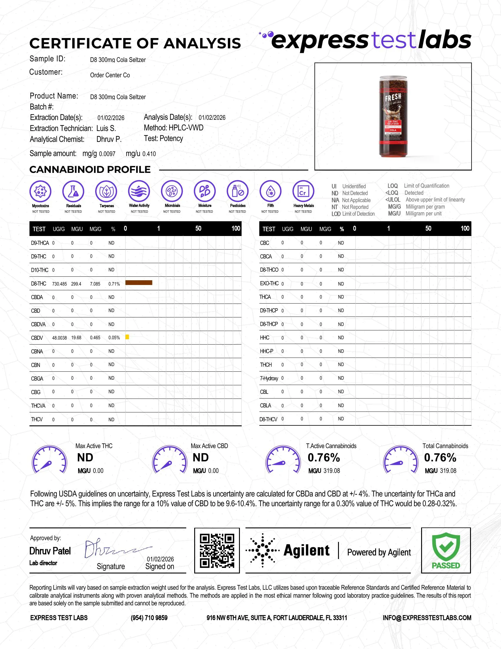 300mg Cola THC Seltzer - D8 Nano - Fresh