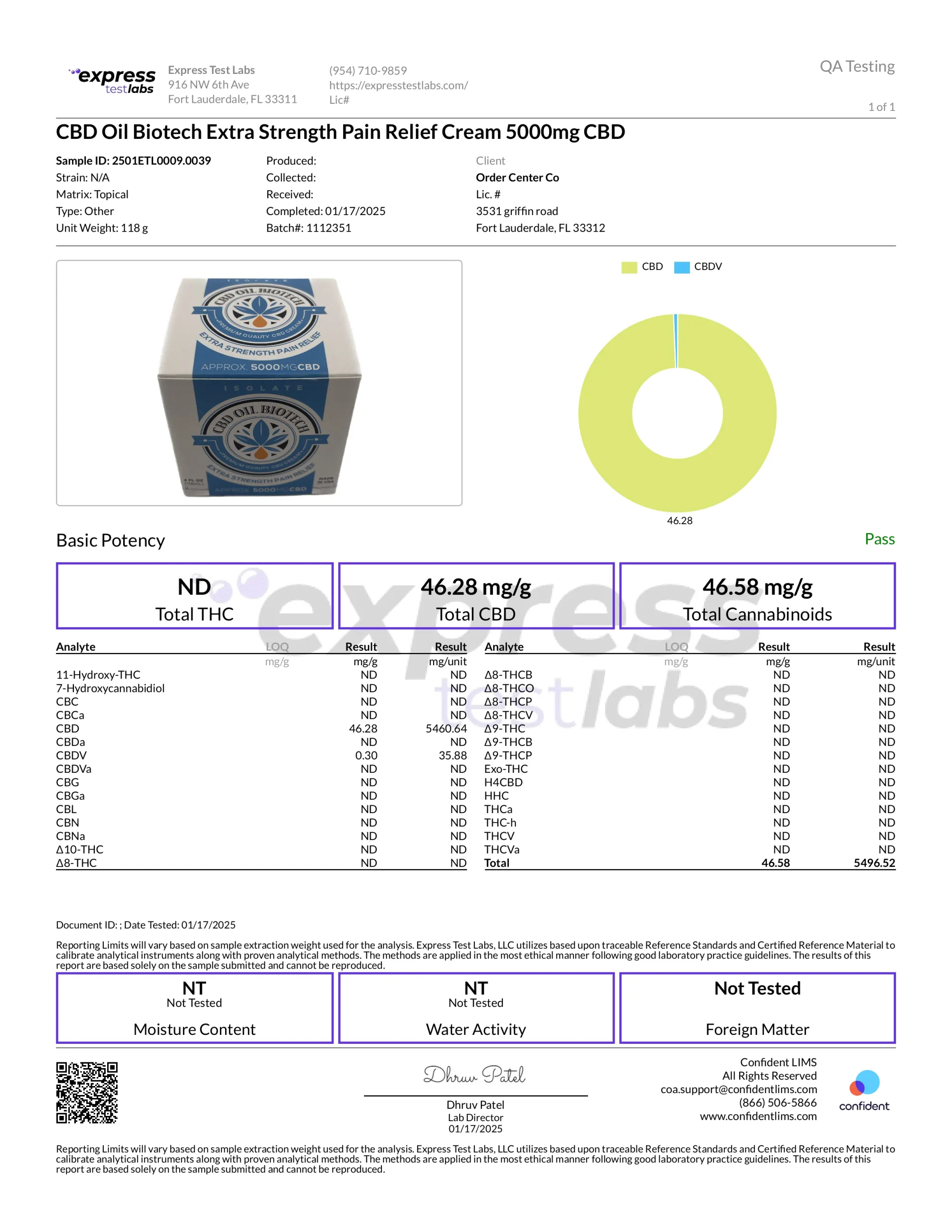CBD oil Biotech Cream 5000mg will help you keep going no matter what field you play on, because when it comes to our CBD creams we understand that losing is not an option. Our products are lab-tested for quality and safety, and all of our certificates of analysis are available for inspection upon request.