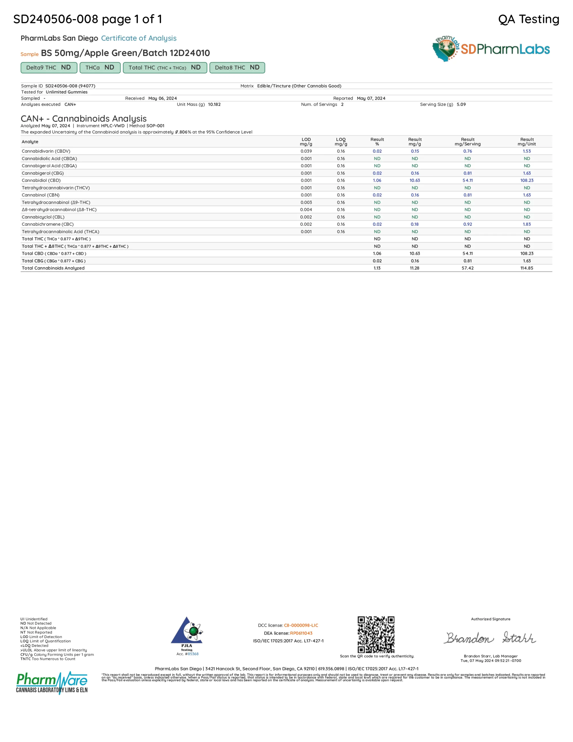 - Each gummy contains 50mg of Broad Spectrum CBD, calming balance and daily stress support.