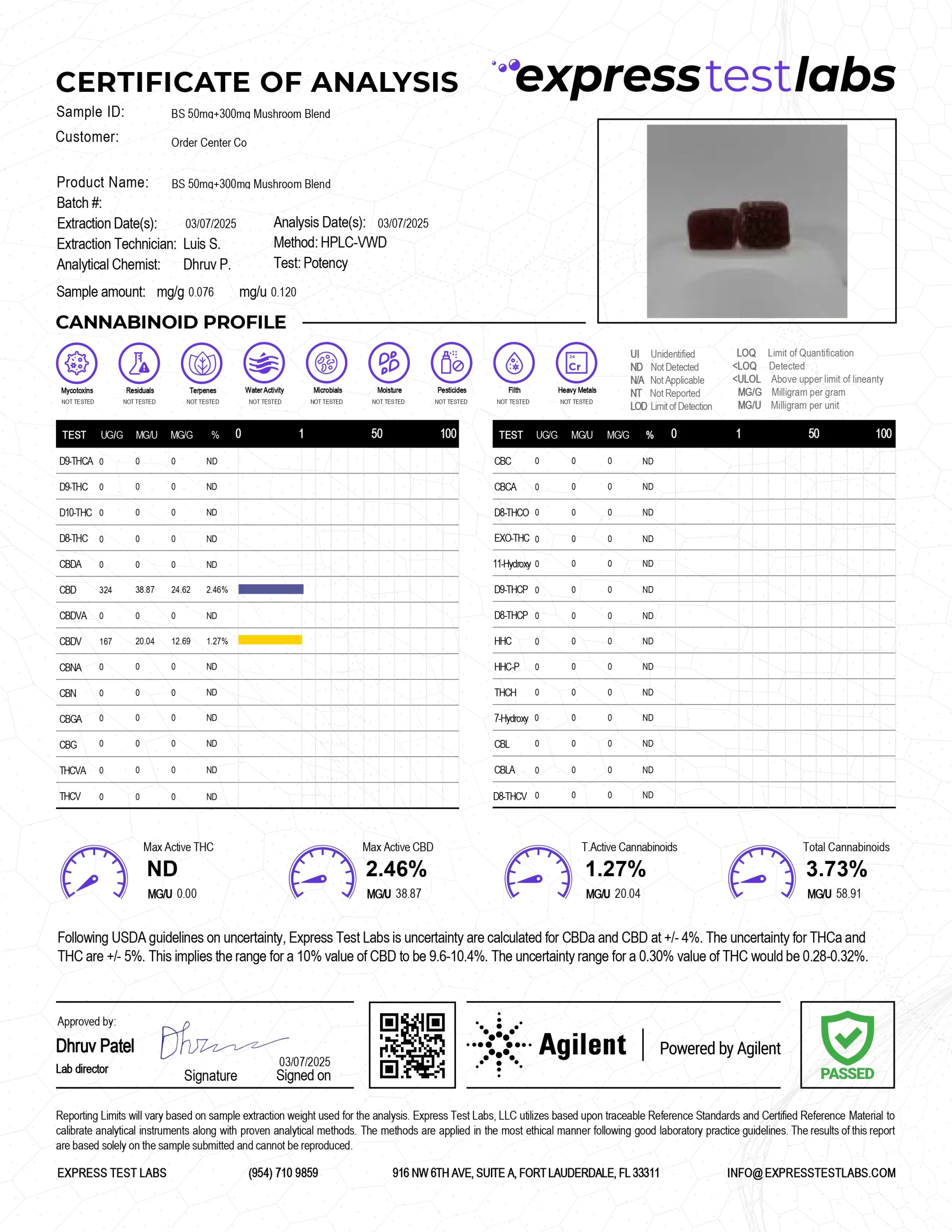 All of your gummies undergo third-party lab testing to ensure purity, quality, and accurate dosing. You can enjoy your gummies with the peace of mind that you're eating exactly what you paid for: high-quality, pure, accurately-dosed cannabinoids.