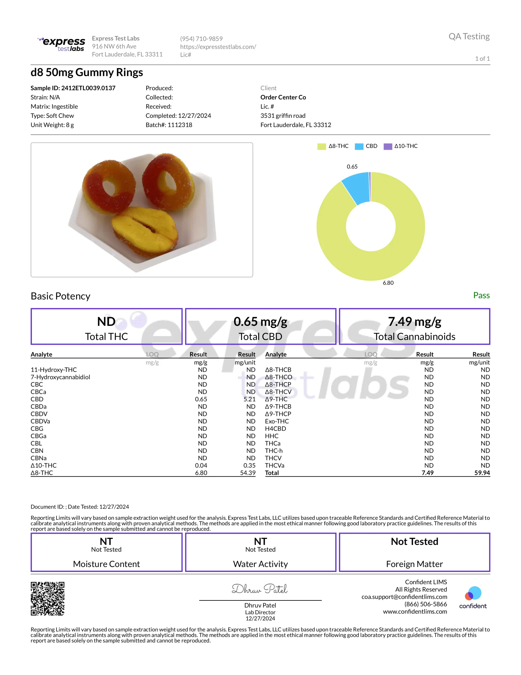 We make these in small batches for freshness, using premium, hemp-derived Delta 8 and carefully selected ingredients for taste and consistency. Every batch is third-party lab tested for potency and purity, so you can count on what’s on the label being what’s in the bag—no shortcuts, no surprises.