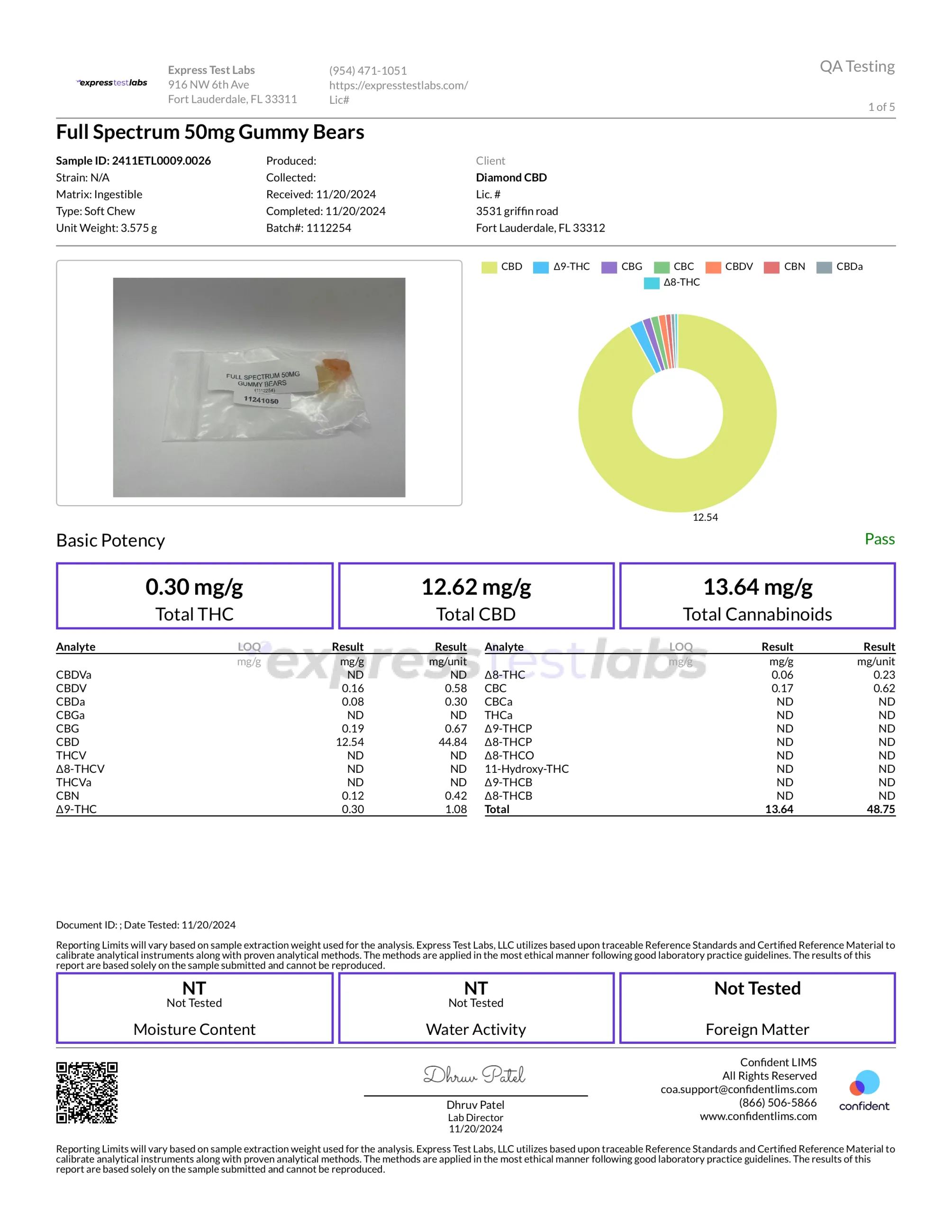 50mg Full Spectrum CBD Gummies - Gummy Bears - Diamond CBD