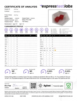All of your gummies undergo third-party lab testing to ensure purity, quality, and accurate dosing. You can enjoy your gummies with the peace of mind that you're eating exactly what you paid for: high-quality, pure, accurately-dosed cannabinoids.