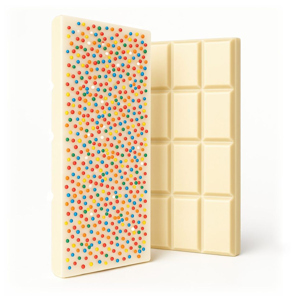 Each bar is crafted to perfection, combining creamy white chocolate with delightful sprinkles for a treat that’s as pleasing to the palate as it is effective.