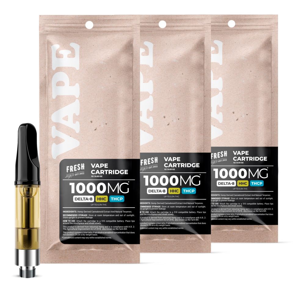 - Fresh THCP, Delta 8 & HHC Vape Cart - Maui Wowie (Sativa) - 1ml - 1,000mg (3-pack): Tropical, sunny flavor with a buoyant, focus-friendly feel—versatile sativa energy with balanced body comfort in a standard 510-thread cartridge.