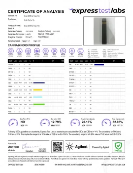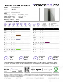 Hemp-derived THC extract (CBD, CBG, CBC, CBN, CBDv) and Natural Terpenes.