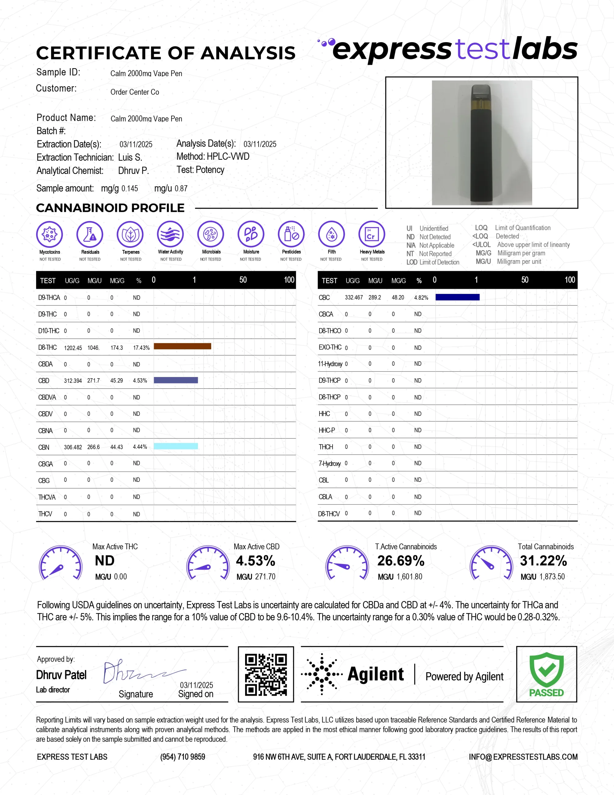 Calm Blend – 1800mg Vape Pen – Hybrid – 2ml – Blends by Fresh