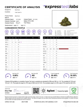 - 28.3% THCA – Calm, Tingly, Relaxed, Sedated, Sleepy.