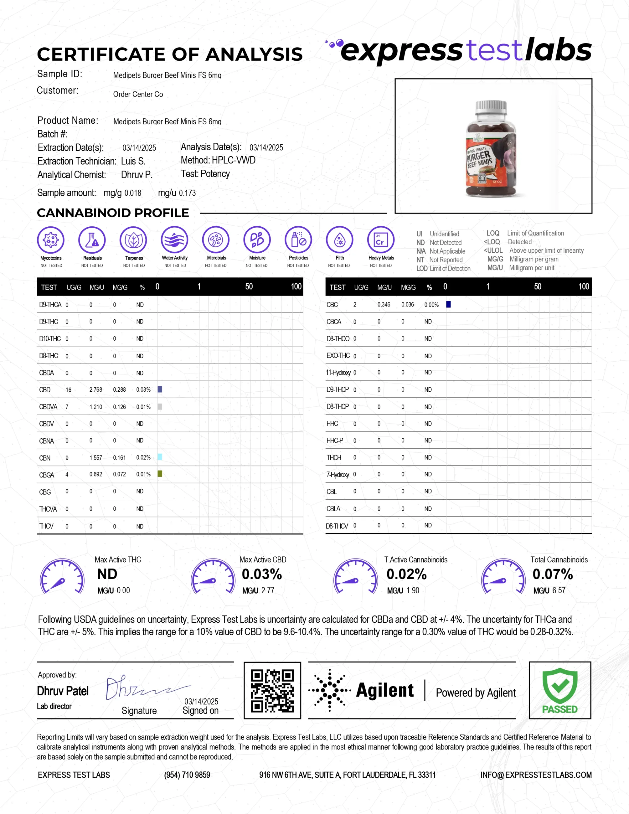 - 300mg CBD Pet Treats For Dogs - Burger Beef Minis - MediPets: Savory mini “burger” treats that bring big taste to chill moments or post-play decompression, powered by CBD isolate. Total strength: 300mg.