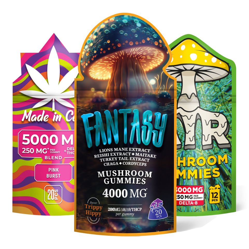 200mg D8, D9, THCP, Mushroom Gummies - Trippy Hippy - Fantasy