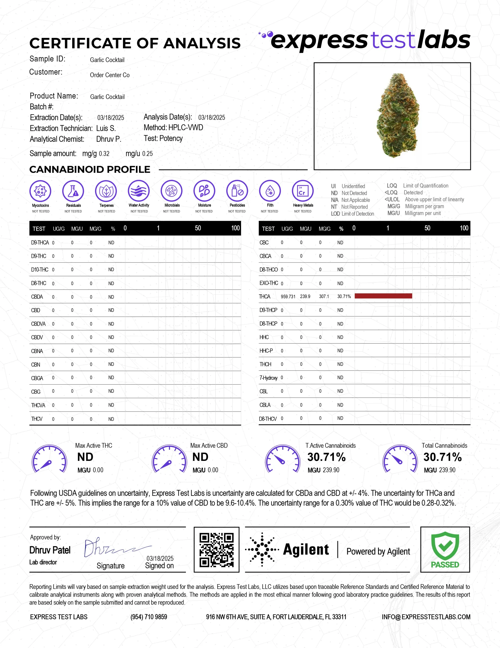 - Each 3.5g of Garlic Cocktail Flower contains THCA, offering calming, creative, happy, relaxed, and uplifted effects.