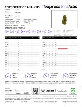 - 27.67% THCA – Known for its giggly, focused, relaxed, and uplifted effects.