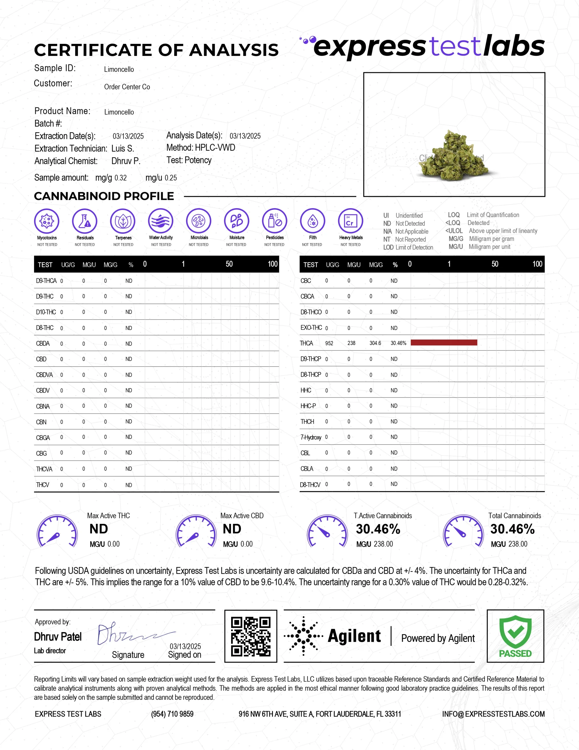 - Terpenes: Pinene, β-Caryophyllene, Myrcene