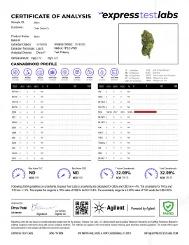 - Terpenes: Myrcene, Limonene, β-Caryophyllene