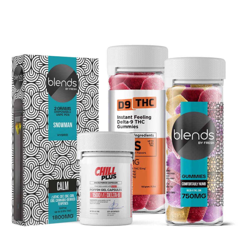 - Comfortably Numb Blend - Delta 8 & CBN - 25mg - Blends by Fresh: A relaxing evening treat—25mg per piece with Delta 8 and CBN to help you kick back and ease into the night.