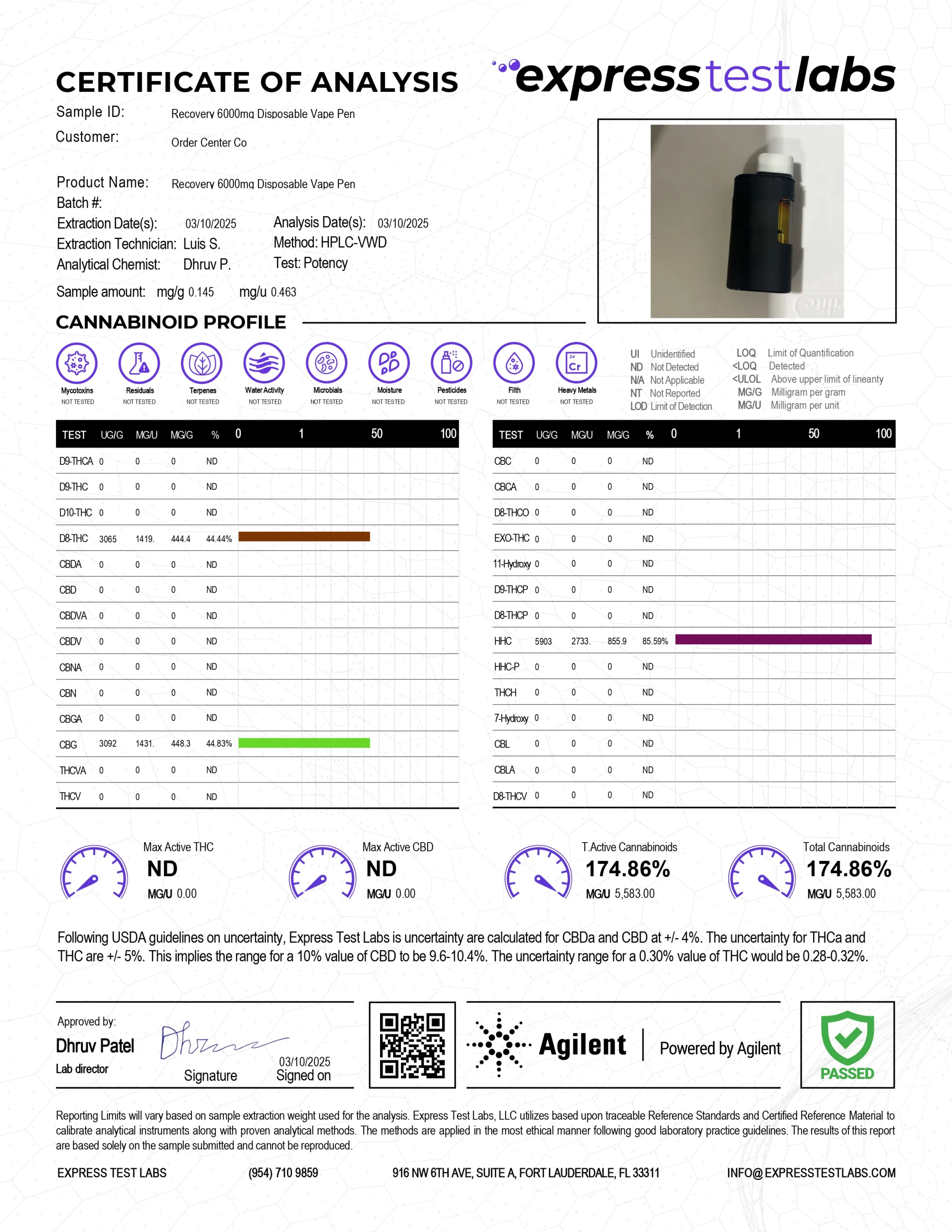 Find relief with the Recovery Blend 6000mg Vape Pen, a hybrid blend of THCM, HHC, PHC, Delta 8, and CBG. This 6ml pen offers 6000mg of balanced support, perfect for relaxation and comfort.