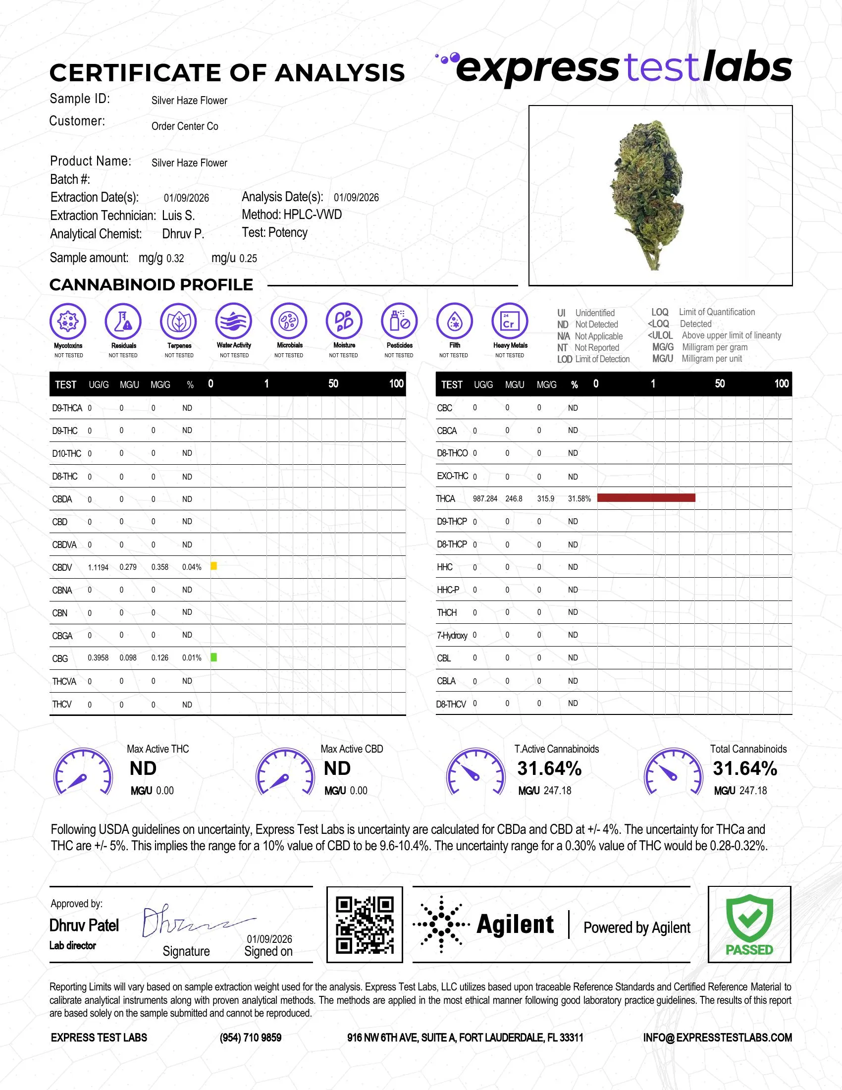 - Silver Haze Flower - Sativa - THCA: Herbal-silver haze with a clear, lively profile for steady daytime momentum.