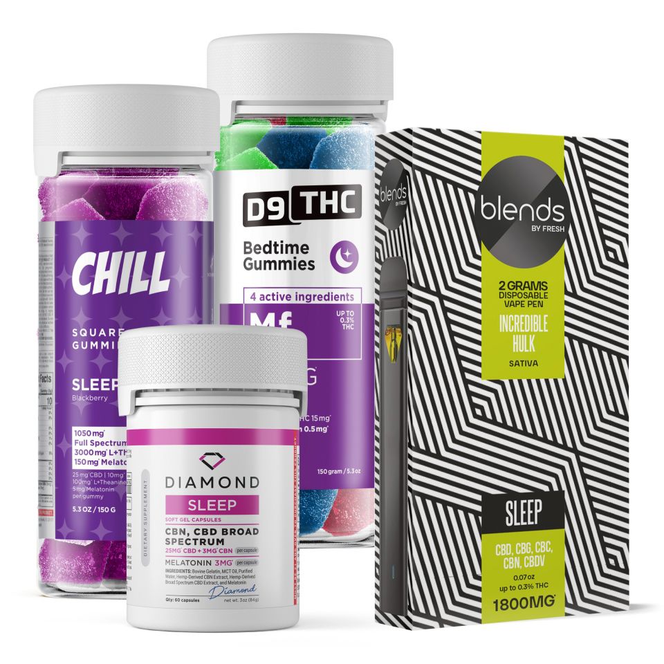 - Blends by Fresh Sleep Blend Vape Pen: A 2,000mg, 2ml Sativa-leaning sleep pen for fast-acting, on-demand calm; a multi-cannabinoid blend crafted specifically for nighttime.