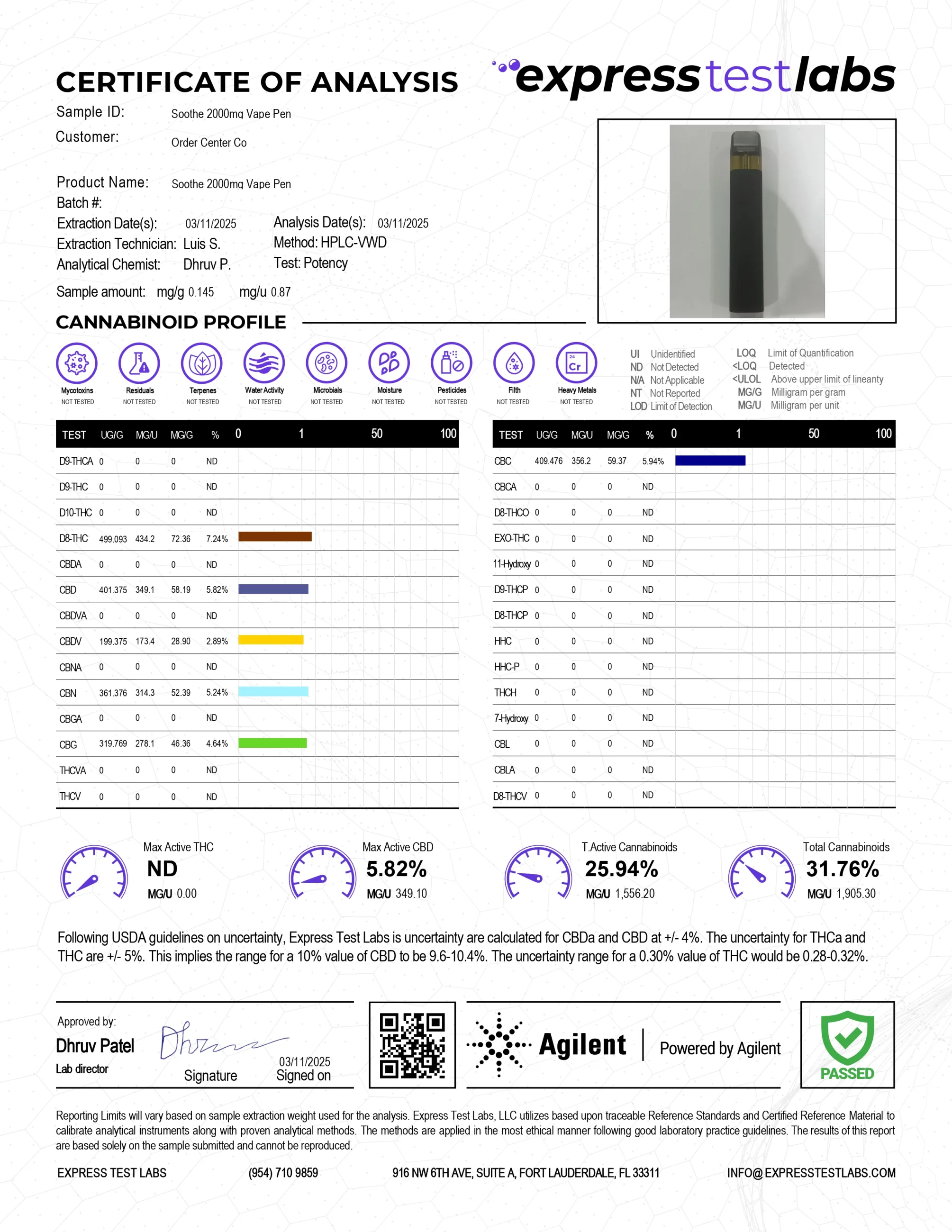 - Total Cannabinoid Contents: 26.14%
